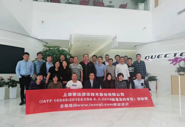 【企航培訓部訊】近期,我司高級顧問師受邀為上海移遠通信技術股份有限公司提供了《IATF16949:2016&VDA 6.3:2016標準及內審員》研修班課程,培訓老師深入淺出的講解,以及互動式的教學,贏得了參訓人員的認可,并獲得了企業領導的一致好評!